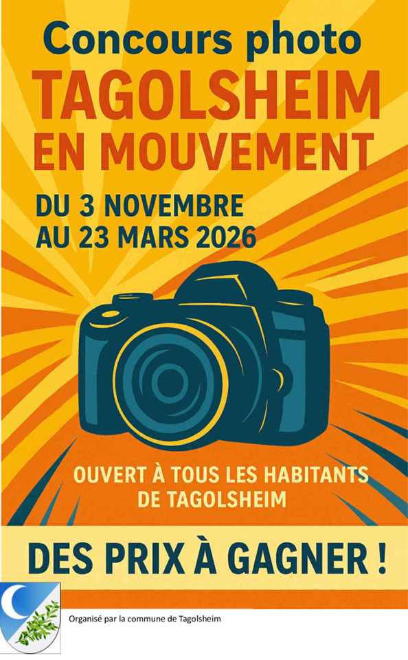 La commune de Tagolsheim organise un concours photo ouvert à tous les habitants de la commune. L’objectif de ce concours est de promouvoir la créativité et le talent des habitants à travers la photographie. Les trois meilleures photographies seront récompensées lors de l’exposition photo du 11 et 12 avril 2026 à la salle communale.