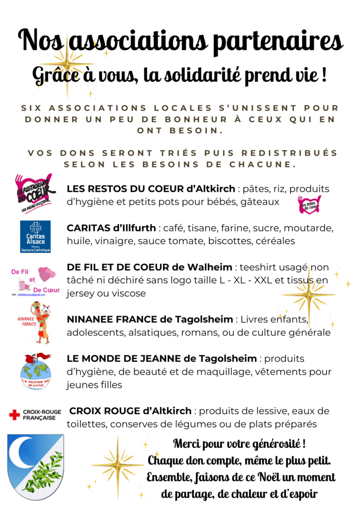 🤝 Tous les dons seront redistribués à six associations locales œuvrant toute l’année auprès des familles et des personnes isolées.