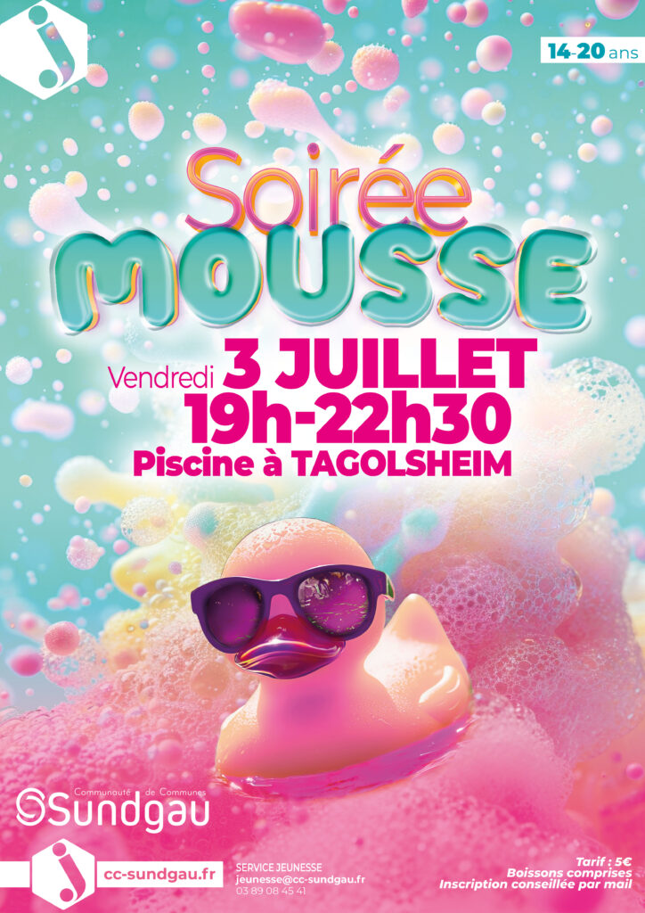 La Communauté de Communes Sundgau organise une soirée mousse le vendredi 3 juillet de 19h à 22h30 à la piscine de Tagolsheim.