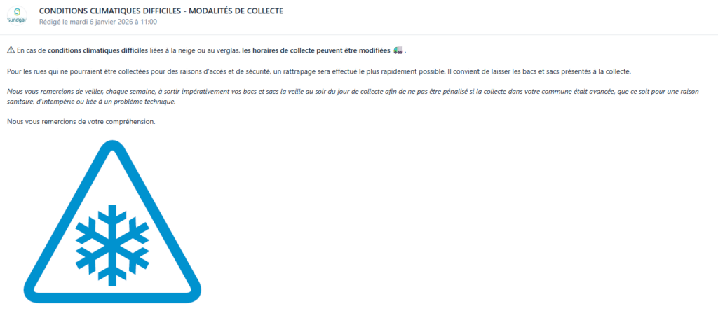 Suite aux conditions climatiques de ces derniers jours, la Communauté de communes nous demande de relayer l’information ci-dessous :